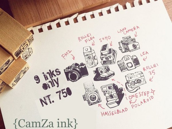 ▲業者推出的相機圖章,讓相機迷一次集齊FM2、HASSELBLAD、ROLLEIFLEX、LCA、ROLLEI 35、POLAROID、LAND CAMERA、SX70、ONE STEP等九台底片界的大明星。(圖/擷取自pinkoi.com)