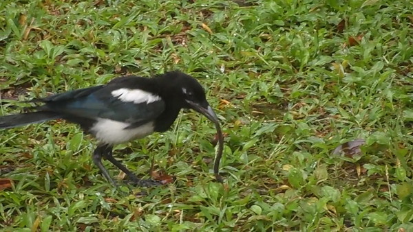三、幼喜鵲吃蚯蚓,逗趣的樣子