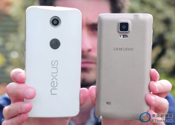 ▲英國網站 Carphone Warehouse 將 Nexus 6 跟 Samsmung GALAXY Note 4 進行的實機比較影片。(影片/取自YouTube)