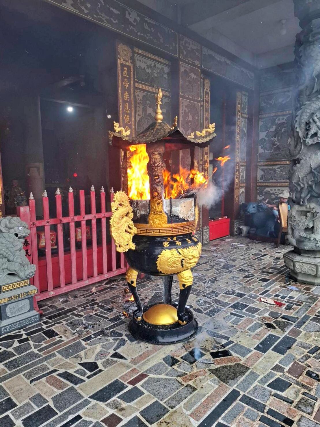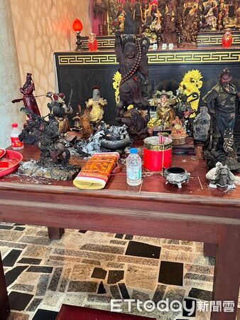 ▲街友縱火毀宮廟!金山五谷宮15神像7香爐遭焚。(圖/記者郭世賢翻攝,下同)