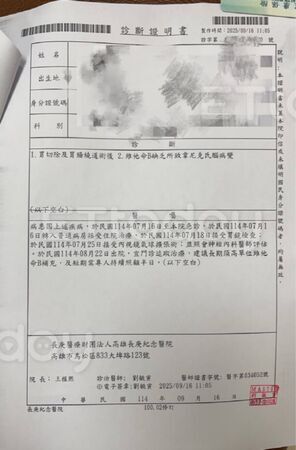 ▲女患者接受縮胃手術後產生併發症,腦部病變住院一個多月。(圖/家屬提供,點圖可放大)