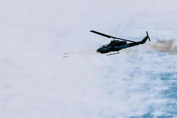 陸軍航空特戰指揮部28日於屏東恆春地區實施「114-4號空用武器基礎射擊」,由AH-1W攻擊直升機、UH-60M黑鷹直升機進行實彈射擊,朝目標發射2.75吋海神火箭及20公厘機砲,精準命中靶區,展現陸航優異戰訓成果。
