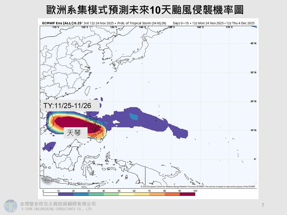 ▼最新歐洲系集模式預測未來10天颱風侵襲機率圖。(點圖可放大/翻攝賈新興臉書)