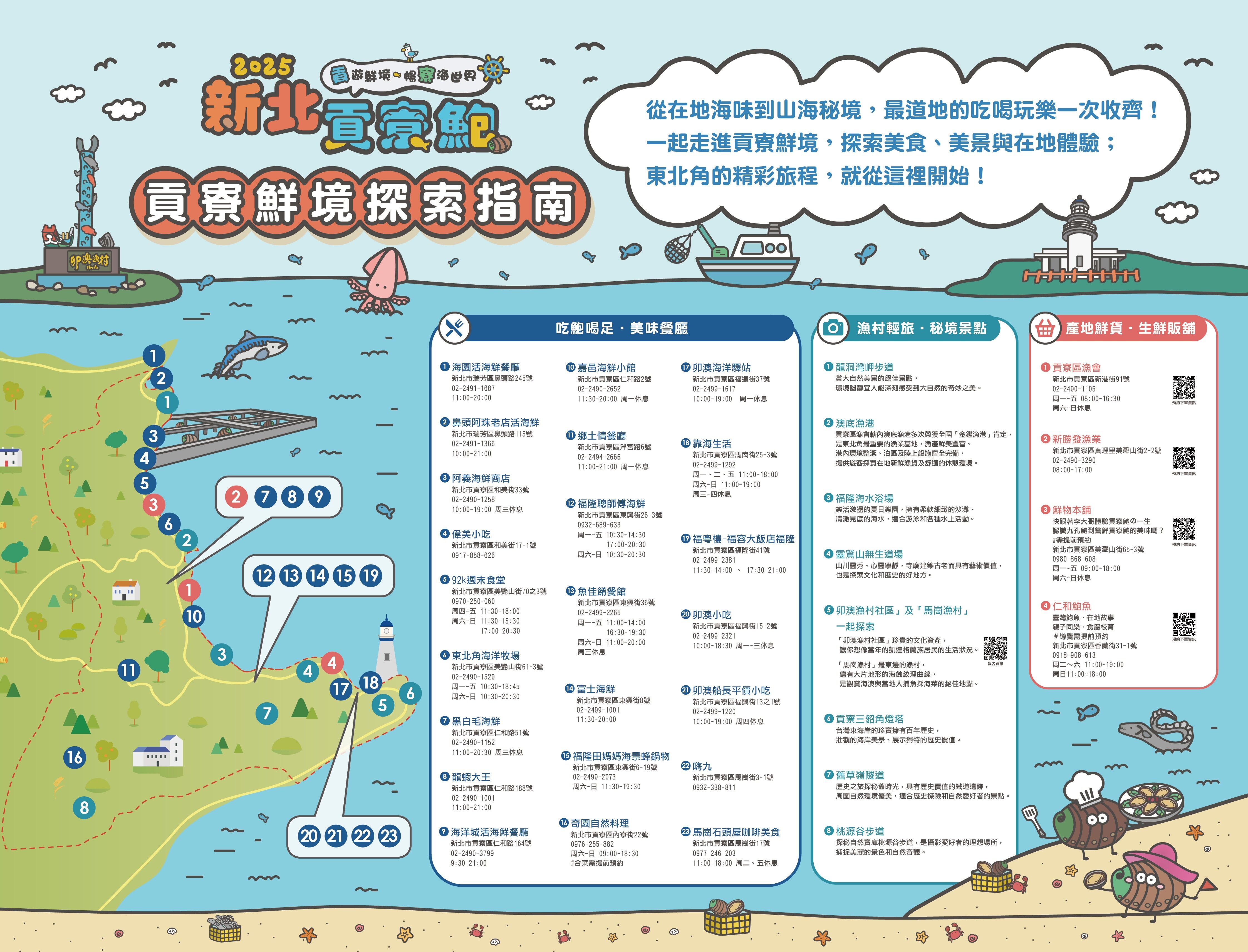 ▲「貢寮鮮境探索指南」可以按圖索驥品嚐美味貢寮鮑料理及購買生鮮魚貨(點圖可放大)。